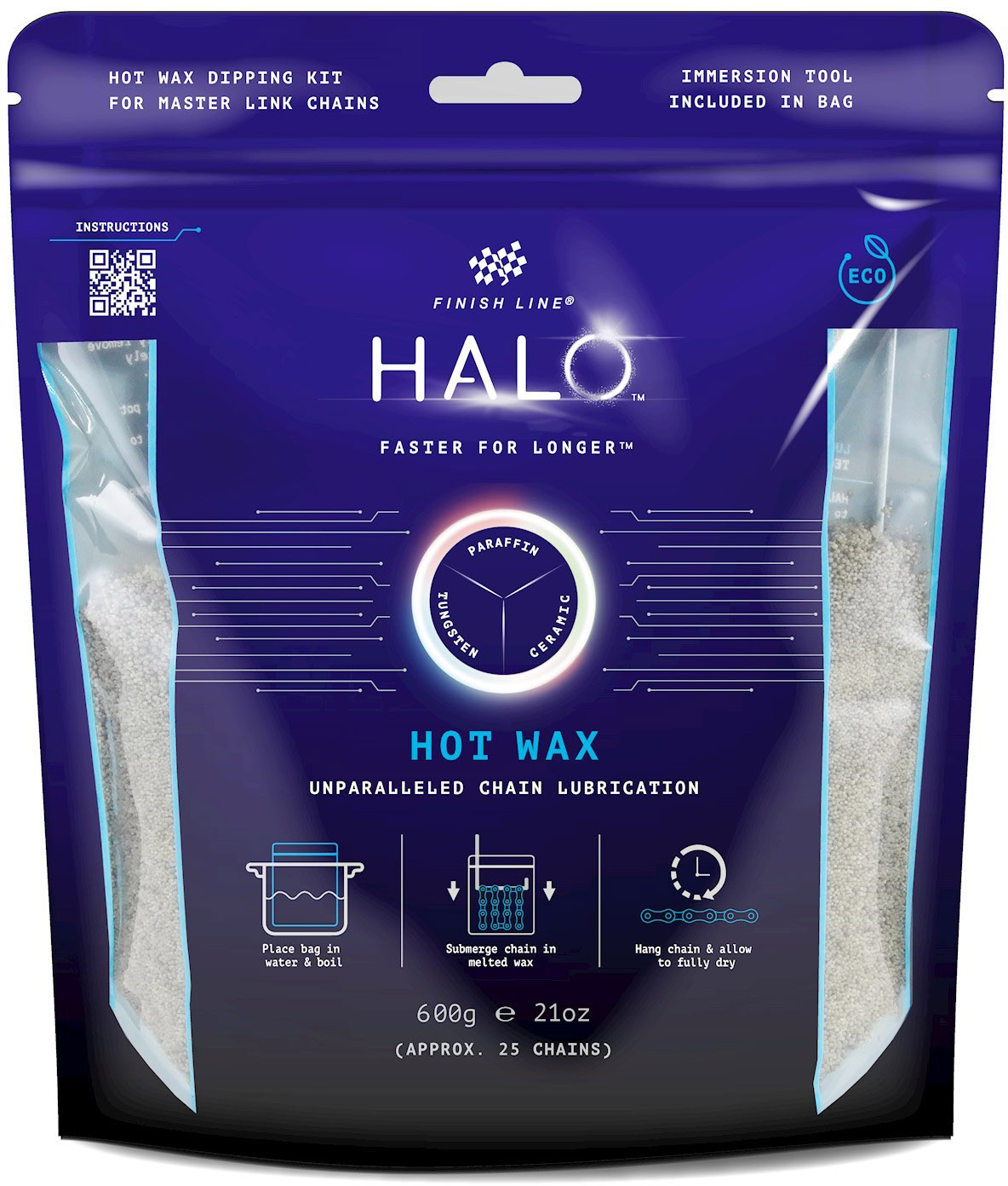 Vi har fundet Finish Line Halo Hot Wax Granulat G Pose fra Finish Line hos Cykelexperten.dk i kategorien Tilbehør Olie Fedt. HALO™ HOT WAX kædesmøremiddel er udviklet til dramatisk at forbedre drivlinjens ydeevne ved at: 1. Reducere tiltrækning af slibende og forurenende stoffer markant. 2. Leverer et uovertruffen niveau af reduceret drivlinjefriktion. 3. Sikrer ekstreme