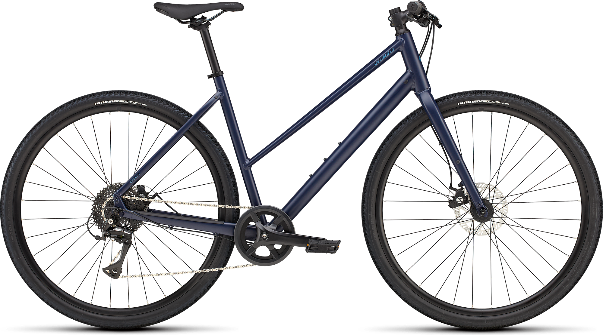 Vi har fundet Specialized Sirrus X Step-through – Satin Deep Marine fra Specialized hos Cykelexperten.dk i kategorien Cykler Damecykler. Sirrus X kombinerer komfort, effektivitet og smidig håndtering på asfalt, grus og alt derimellem. Den tilbyder en blød og stabil kørsel med større dæk, en mere oprejst position og en intuitiv 1x geargruppe. Egenskaber Smidig og komfortabel kørsel med s